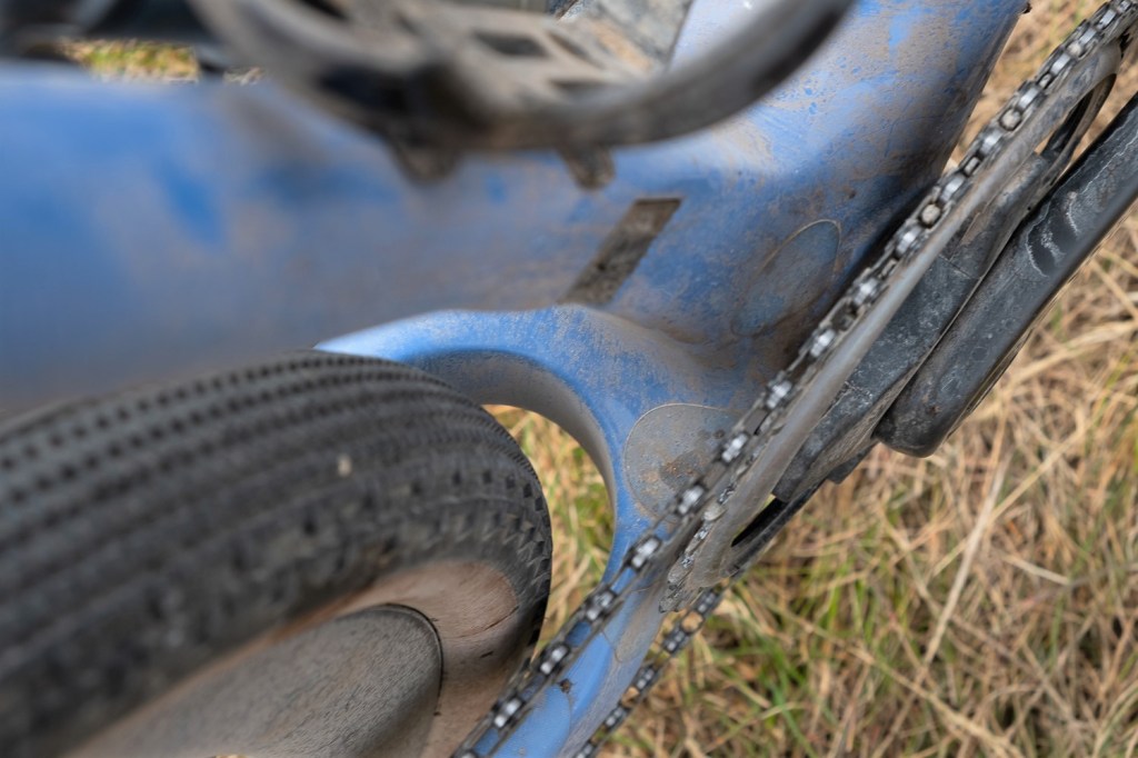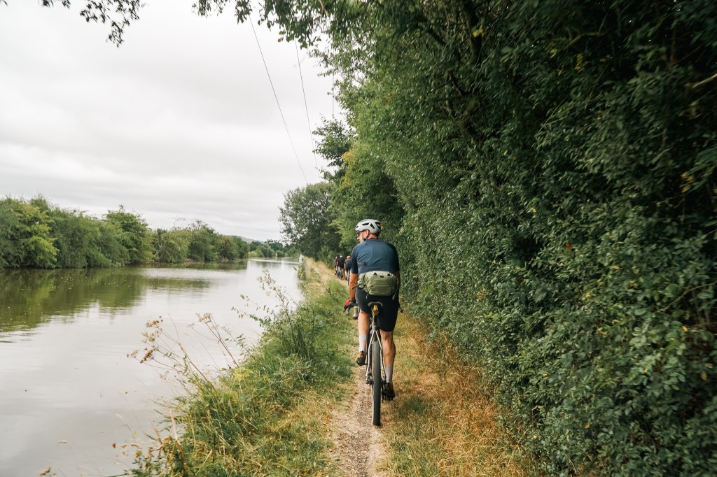 Riding away from the campsite our first obstacle was a gate we had to lift the bikes over. Straight away the difference from my usual bike became apparent, this bike is light! I can’t tell you exactly how light as I don’t camp in a field with a set of scales but I will say it doesn’t feel too light. that might sound strange but bikes that are super light tend to be skittish riding down rough descents as they literally bounce off every root or stone. This bike was light enough not to fatigue you over long distances but heavy enough to be very well mannered downhill. This was proved straight after that gate lift as we sped down the field into a sharp right hand rutted turn. I’d not really had time to get used to the bike but it delivered me to the bottom of the hill with a big grin on my face. A road section next allowed me to press on the pedals and try out the power transfer. No complaints here, stand up and pedal and the bike responds instantly, no detectable side to side movement. I tried the same when we got to a long section of towpath with multiple small rough climbs past lock gates. I was either putting the power down while sat on the saddle or standing to sprint. Sat down the skinny seatpost and seatstay profile of the frame meant I wasn’t bounced around and could concentrate on looking where I was going and choosing a good line avoiding erosion on the towpath surface.
