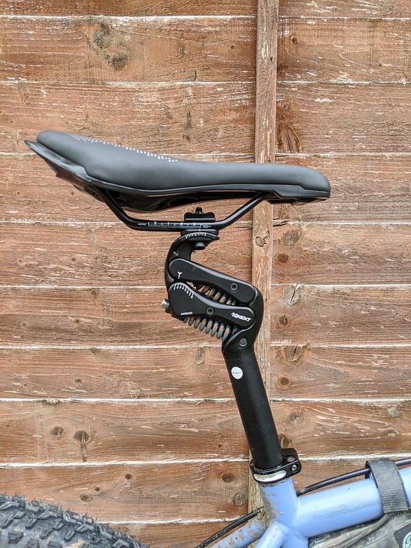 Most experienced riders have learned the “standing up and using your legs as suspension” technique early on and it’s hard to unlearn this so I found I had to concentrate to make myself sit down over roots and stones/rocks to see how the post performed. Over rough gravel and roots the post did exactly what it says on the box, soaked up the chatter and isolated me from the worst of the bumps, I could make it bottom out but it took some effort as the spring rate ramps up towards full compression. The post worked flawlessly throughout the rides I did on it, in complete silence too even when I covered it in mud flung up from the rear wheel. There isn’t much more to say really other than the post does exactly what it was designed to do. It takes some of the knocks and bumps out of the terrain and does it quietly and efficiently without any discernable side to side play.