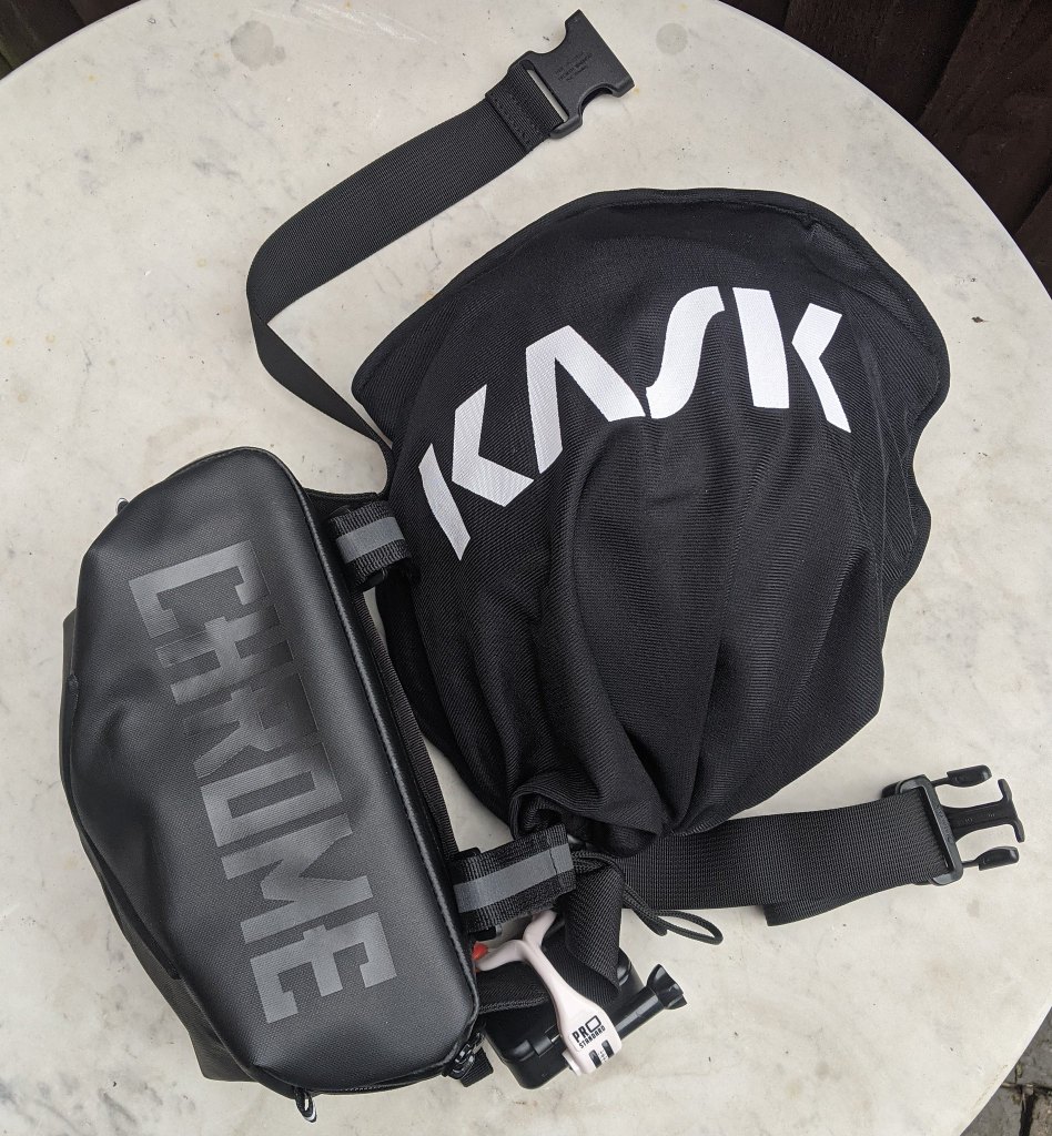 I rode with the bag in all conditions, sun, wind and on one occasion a couple of hours ride in torrential rain. Chrome do not claim that the bag is waterproof at all on there website but i can confirm after this thorough drenching the contents of the Helix were as dry as when i put them into the bag.