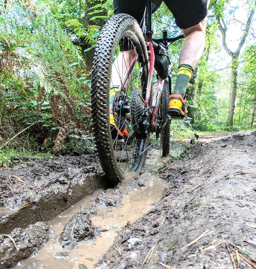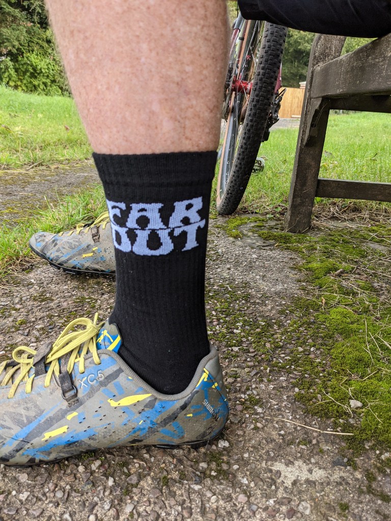 Riding the Far Out socks for the first time I was very impressed how comfortable they were, some new socks are tight until the first wash, these were so comfy and apart from remembering to photograph them I forgot I was wearing them, always a good sign. The socks survived a soaking and a layer of mud without incident. They also stayed up in the same position despite numerous trips over rough ground that has literally knocked my socks off before! I can’t say I noticed the extra padding but maybe that was because they were so comfortable anyway. The socks also survived a few brushes with spikey under growth and look as good now as when I opened the packet.