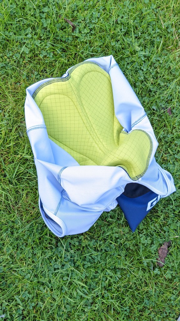 These shorts are described as a pro replica and although you don’t need to be a pro rider to wear them you will need to check the sizing. I usually size bib shorts by height and being over 6ft tall I go with XL sizing just to stop the feeling of being squeezed longitudinally. These shorts were perfect in that sense but are definitely a “pro fit” I’ll admit they are also advertised as a compression fit so that does add to the feeling of tightness and you can feel your muscles supported. What I didn’t like though was the seam that runs from the hip around mid thigh which digs in and gives a definite crotch bulge. I was conscious of this pressure all through the rides in this short. The pad is very comfortable for short and long rides. I did feel a little silly wearing Giant branded shorts on a non Giant gravel bike though. if you are pro sized (I’m not sure what that is or the connotations of it) and like big logos and perhaps ride a giant bike these are a short to consider.