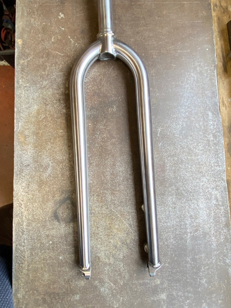 We could have done the easy thing and added a generic carbon fork but Chris wanted to build a fork in steel. Again, he’s done many MTB and road forks but wanted to do a gravel specific fork. We chose a unicrown design with bolt through drop outs