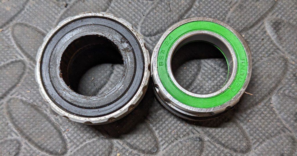 The Enduro bearings bottom bracket differs from the standard shimano version as they fit the bearings straight into the shell, there’s no aluminium bearing carrier. This allows bigger ball bearings which give double the load carrying capacity of normal size bearings, I’m no engineer but even I know a larger surface area can help disperse any load and reduce friction.