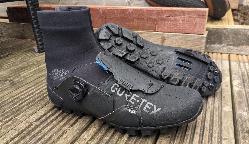 When it comes to feet, mine run cold and I’m always searching for the perfect solution to keeping my toes comfortable when the temperatures drop to single or minus figures. So it was either very brave or very foolish for Northwave to take up the challenge with their Celsius Arctic GTX shoes. Warning: there’s a lot of acronyms and product names in this review, such is the current fashion in the bike industry. Still, “Celsius Arctic GTX” does on the face of it sound impressively warm doesn’t it? Luckily the period of riding in these coincided with the UK weather reverting to normal with a named storm, torrential rain, floods that then turned into a cold snap of windscreen scraping mornings and crunchy puddles, so all in all perfect test conditions!