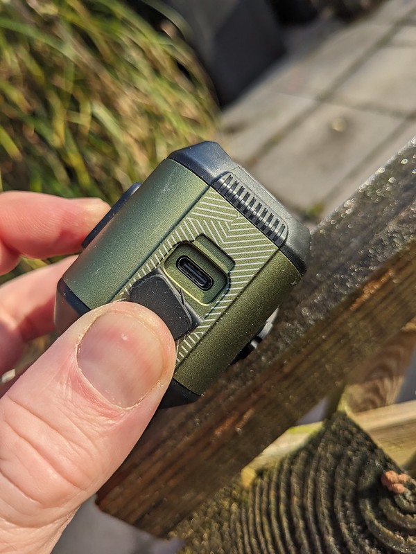 In the box is an out front mount which comes with the option to just clamp on the light, to run the light and your favourite bike computer or using an included adaptor the light/computer and an action cam. It also comes with a bluetooth handlebar remote with which you can swap between modes. It has a USB-C charging port (2hrs for a full charge). This port is 2-way and you could use the light as a power bank!