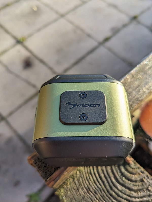 The Moon TitanMax is pretty unique as its shape is cuboid and not like any other light I’ve seen. It is 62 x 48 x 56 mm and weighs 152g on my unvarified kitchen scales. It boasts 1700 lumens at full power and has two beam modes, Moon describes these as “city” and “highway”. this is a bit confusing as they both of these say urban commuting to me but city is the lower power setting. if you think of “city” as being a mode to not dazzle oncoming traffic (or dipped headlights if you are a car driver) and “highway” as full beam and much more suited to off road cycling. Essentially city has a shorter throw and highway lights up the road/trail further ahead.