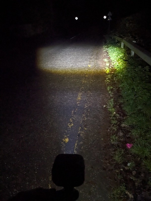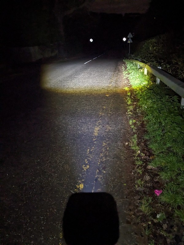 Off road you definately need the higher power setting as the city setting gets a bit lost and seems to spread sideways rather than projecting forward. The highway setting throws the beam much further forward allowing you to see obstacles sooner. Due to the shape of the lens the beam pattern is “square” rather than a cone seen on more regular shaped lights. This doesn’t detract from the lights ability to light up the trail but does take a little getting used to if you are familiar with other lights.