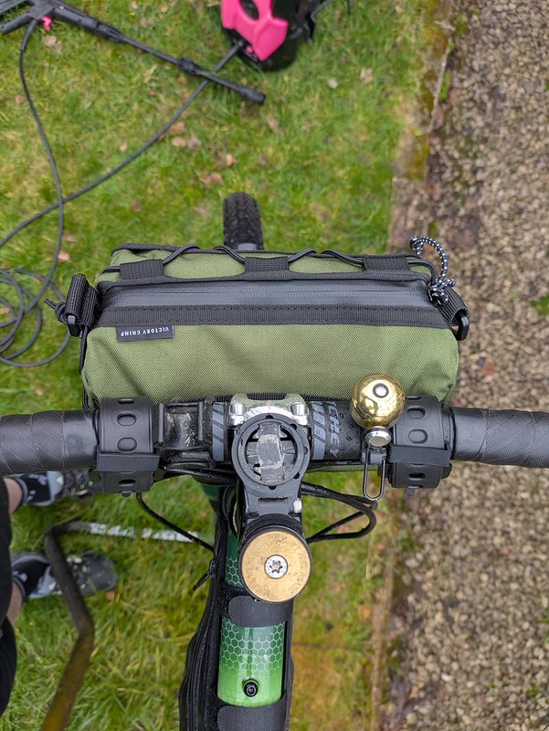 The bag is very stable even with a heavy load in it, I carried a large glass jar of chunky marmalade (don’t ask) for 36 miles over rough terrain and there was hardly any bounce or swinging. Also because of the lining there’s minimal rattle when you’ve only got a couple of things in the bag too. Fitting to the bike is easy, the straps are long and so should fit any weird wide aero bar you have. The straps could be a bit more elastic though, especially when it’s cold out and they stiffen up but then you are probably not going to be taking the bag off and on again like I do so that’s hardly a negative. In fact its hard to find anything but praise for this bag, it quietly gets on with it’s job, seems tough without being overbuilt and heavy, has lots of features but no silly gimmics and can resist typical UK weather. Then again Victory Chimp is based in Northern Ireland so I really shouldn’t be surprised at its design.