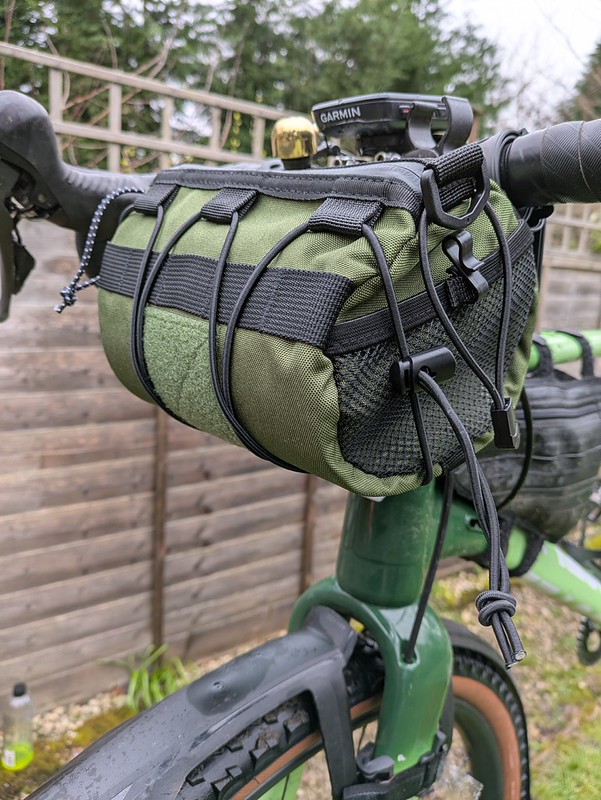 The handle bar bag has become a bit of a cliché in the gravel bike world, along with check shirts and pictures of gravel bikes next to wood piles in the forest. However the bar bag does have a place on a gravel bike as we tend to carry more stuff than our skinny tired cousins because we go a bit further out there (did you see what I did?) away from civilisation. By that I mean away from cafes and shops. Gravel bikers also seem to be not such fair weather riders and go out when the forecast could turn nasty and inevitably being the UK the ground is muddy. So, the need to carry a decent waterproof jacket, some snacks, some tools and a phone for selfies next to a trig point is there. Stuffing all that into the aforementioned check shirt or the pockets of your cargo bib shorts can be problematic if not downright impossible.