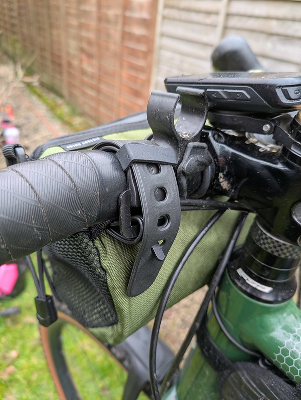 In use the bag passes the “can it be opened and closed with one hand while riding along” test with flying colours. So on the fly haribo or crisp rations are easily accessible. I managed to get a lightweight jacket, E-inflator, tubeless repair tool, multitool, Mini phone tripod (social medial, sigh), phone and sandwhiches (normal medium sliced 2 rounds, usually cheese) inside easily and used the side pockets for empty wrappers until I found a bin.