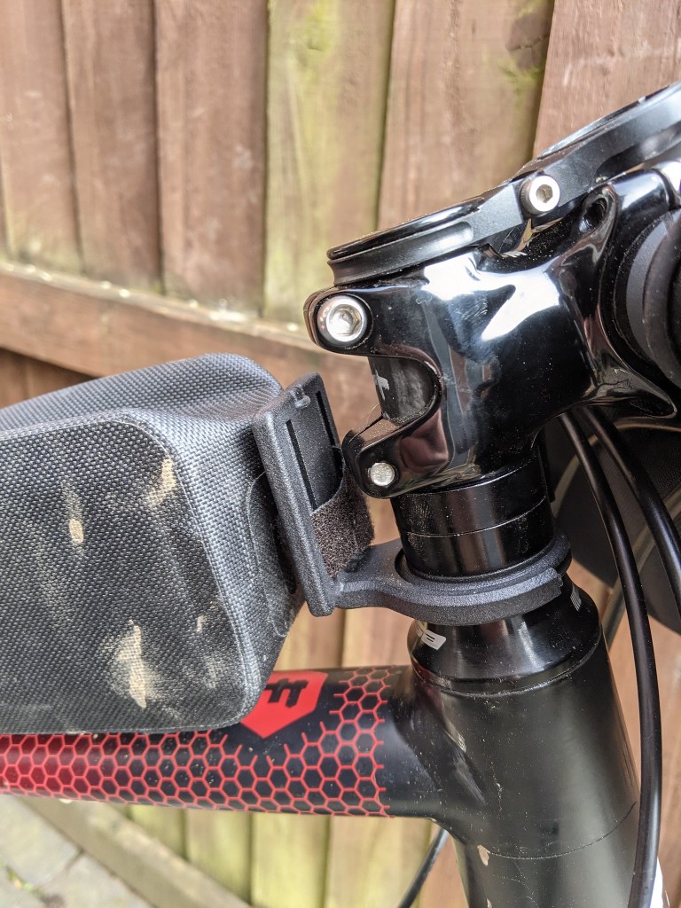combine this with the ASS Clip and it makes the bag completely strap free! It can be slid back and off as the clip on the steerer just slides off too. So, want to swap one bag between two bikes? easy with a mount on each. want to take your valuables with you when leaving your bike? just unclip the bag and go. Return and slide the bag back on in seconds and away you go.