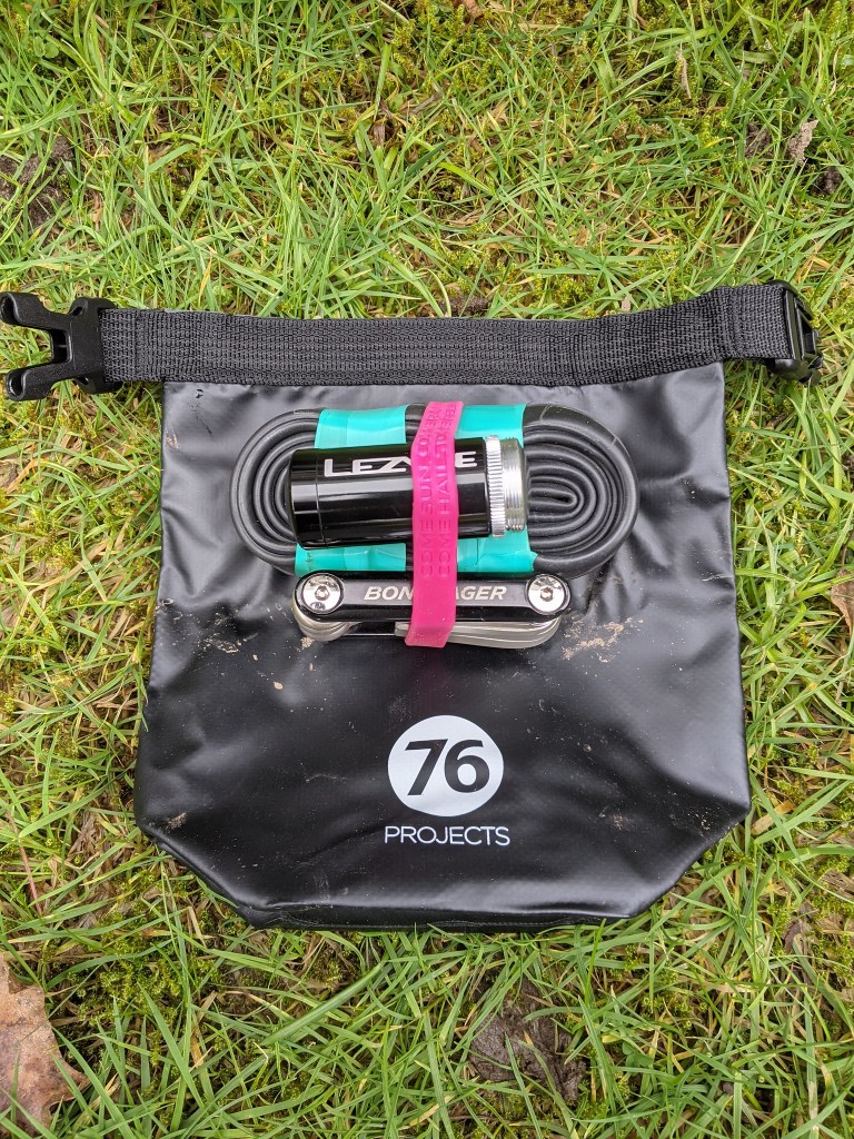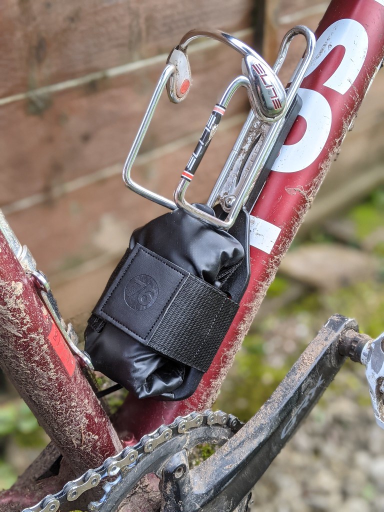 The Piggy bike storage really does work, it holds everything securely and it’s easy to access when you need them. I added the dry bag option and unless you want your tools and tubes covered in whatever is thrown up from the wheels I think its essential. 76 Projects also sell a fabric zipped bag too that looks very neat. At £25 for the mount alone I think it’s pretty good value for money. The dry bag adds another £10 More details on76 Projects “The Piggy” can be found here