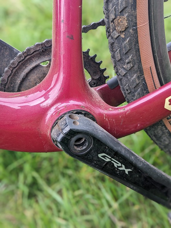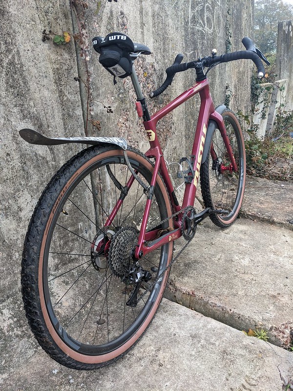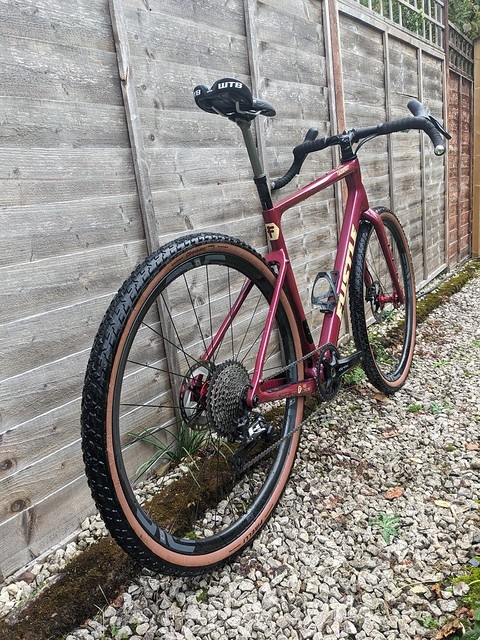 Tarmac, yes the T word, I know some of you spend a lot of time on the black top on your gravel bike so i need to tell you that the G2 bowls along very efficiently on tarmac and yes on our current rough ass roads it does feel smoother than the G1. it also turns into corners well with no flex at the head tube and despite the slacker head angle compared to a road bike it doesn’t feel sluggish or slow to turn. It does feel like the bike wants to propel you forward when you stamp on the pedals, the side to side flex of the frame is miniscule and you feel like non of your energy is wasted. It doesn’t though batter you, it’d be perfect for a cobbled sportive ride. if you are intending to ride it more on the road or with a road club i’d get the double chainset version to try and match any of your buddies using road groupsets as although the 1 x range of gears is perfectly adequate the quick changes of pace in a group ride are better suited to the double set up. One other thing to note if using as a road or winter bike is that because of the massive tyre clearance you’d be able to run a wider tyre and still fit full mudguards.