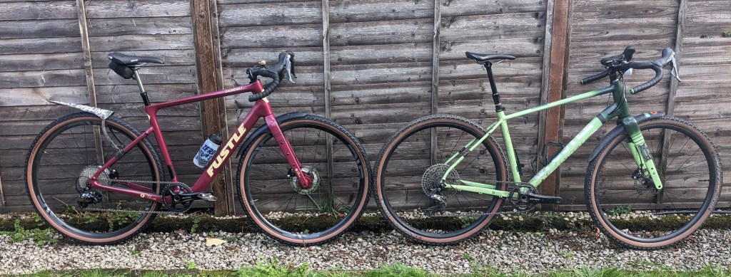 Alistair, the owner and designer at Fustle bikes sent me a bike that he had ridden at a local gravel sportive in Ireland. It was built with a basic 11 speed groupset and finishing kit and He was apologetic that it wasn’t the 12 speed Shimano GRX kit that all the production bikes get, this was down to the bike having launched a month or so before and all the available 12 sp stuff was going on bikes being sent out to customers. It was ideal for me though as my original bike has the very same groupset so comparing the two frames and how they ride would be much easier.