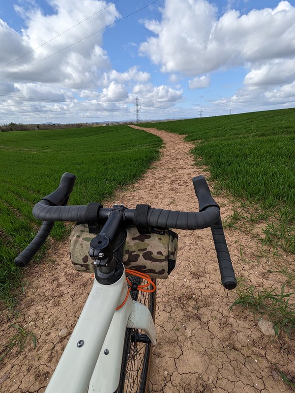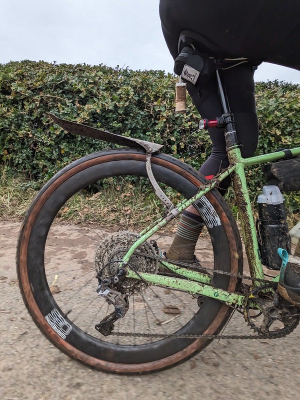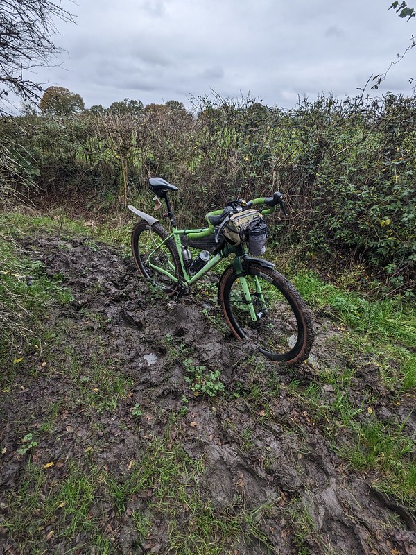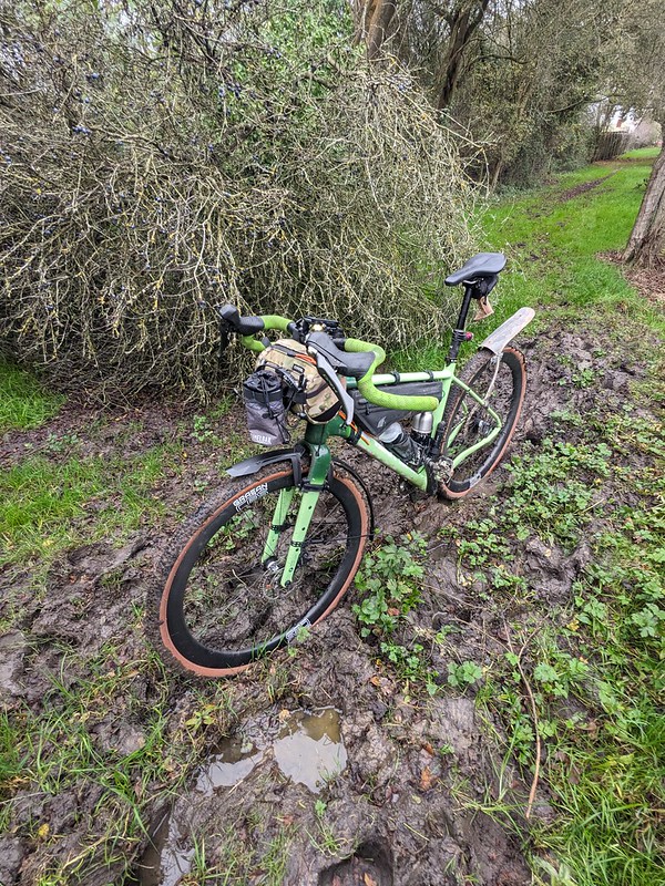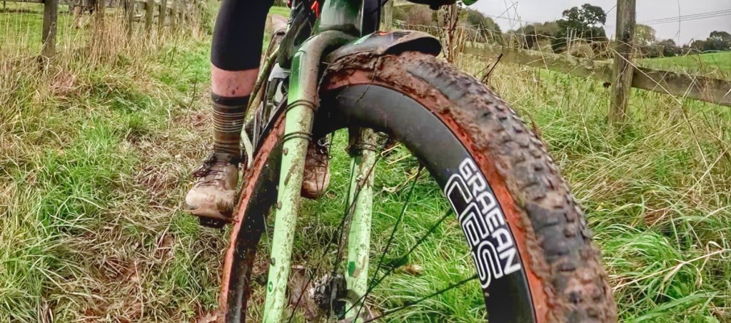 The first is easy to fix and totally understandable. The gravel king tyres (old style not just launched version) just do not work in UK winter/spring or autumn, they clog up with mud, don’t clear and do not inspire confidence on wet terrain, that sort of terrain you might encounter on an adventure say, while you are going “anywhere” etcetc, you see my point. Well, as I said it’s understandable, Fara can’t specify tyres for each country they seel bikes too. GK tyres are probably perfect for California or a desert country so I can forgive them that. What I don’t get is the narrow aero profile handlebars, 42mm on a bike designed for someone tall enough to fit a 56cm bike is just too narrow. There is no flare and the reach is fairly long. If you pitch a bike for adventures and laden bike packing you need to spec a wider, more confidence inspiring bar, especially if that rider is tired and doesn’t know what trail obstacle is around the next corner. Plus if you are bike packing you are only getting a tiny bar bag inbetween those drops. Now you can, if not buying the off the peg bike but are using the bike builder portion of Fara’s website choose a different bar and stem but even then the bars are only 2cm wider and the stem 20mm shorter if you follow their recommendation. This obviously adds to the price though.