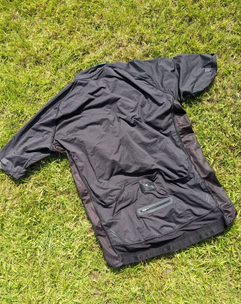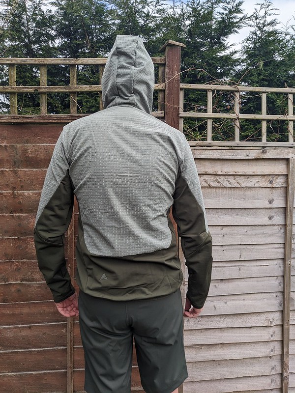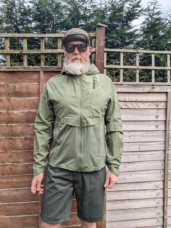 It is full waterproof with taped seams and has vents front and rear to aid breathability and an integrated hood. the hood has a drawstring adjuster to tailor the fit and prevent it blowing about. the jacket is cut for cycling and has sleeves that are longer to account for the cycling position. The cuffs are also partially elastic to stop draughts blowing up the sleeves. Again the fit is real world.