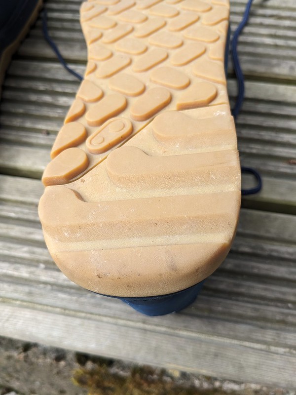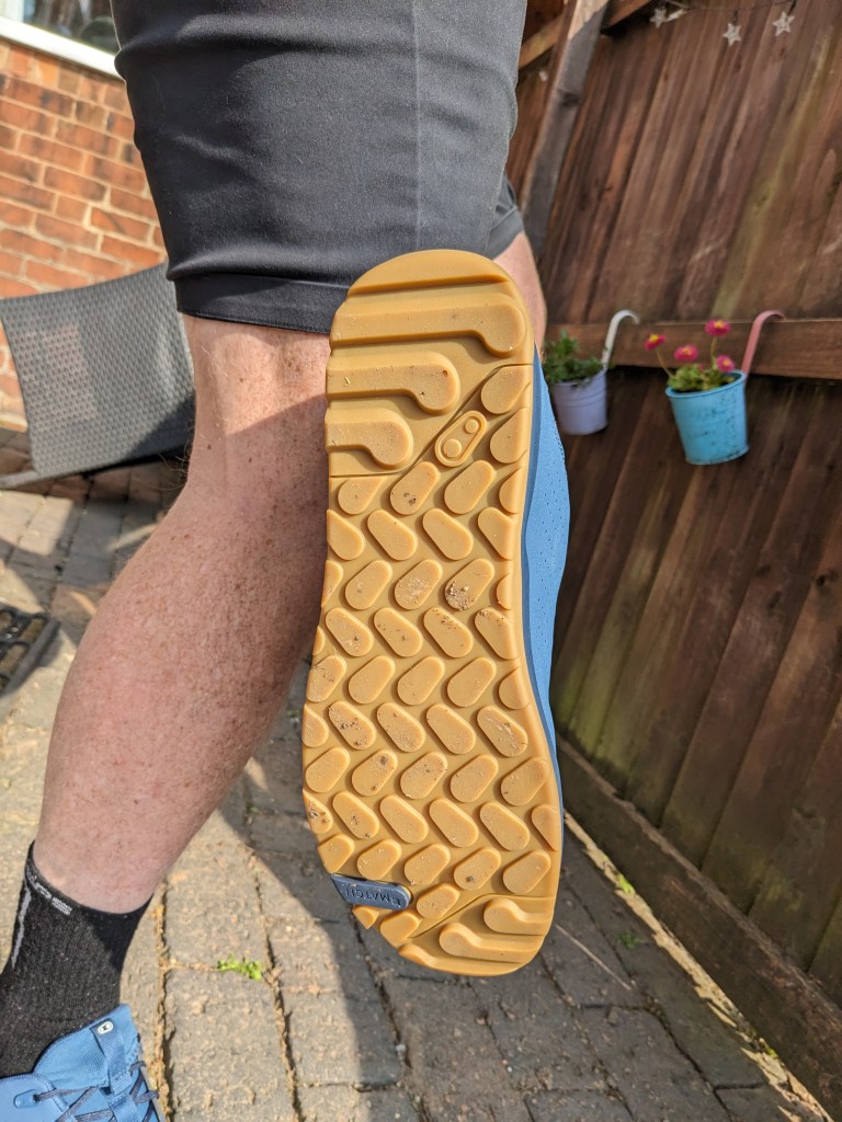 The sole is made up of “lozenge” shapes that you will realise is the same outline as the Crank brothers logo, a nice touch. at the heel and toe the pattern changes to horizontal grooves that are designed to aid traction when walking up or down slopes.
