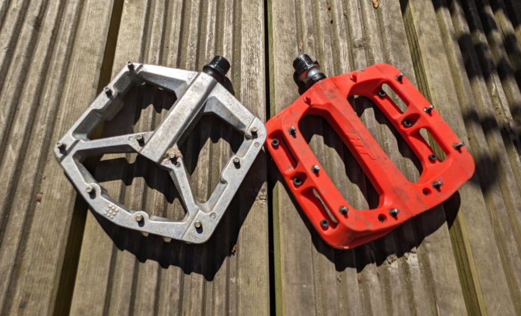 Grip wise there’s nothing in it though. Both are at the top of their game, so i guess it comes down to that warranty and the slightly nicer bearing for me to prefer the Stamp pedal, but then I can put up with silver, if you want a colour and pay a lot less ££ then there are no drawbacks to the HT pedal.