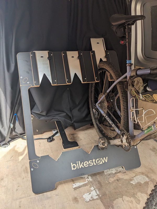 Up until now I’ve been bungy cording mine to the side of the van, which is ok but not ideal as the bike can slip and if you have more than one bike in there they can rub together. I was looking for a solution and came across Bikestow.com which looked interesting. I then checked their contact details and found they were situated only 20 minutes from my shed! I dropped them a line and they very graciously offered and trusted me to review a demo Original 3 bike rack.