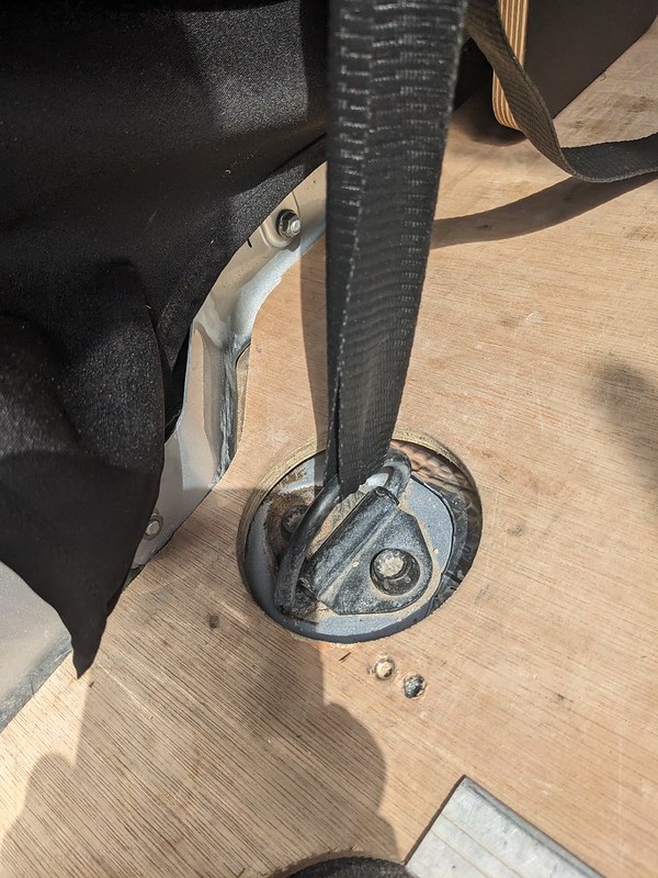 The racks are made from exterior grade birch plywood so it ok if your tyres are wet when the bikes go in. All the shapes are CNC cut with a very high standard of finish. All smooth edges and straight lines (not like my attempts at jigsawing I can tell you!) and this was a demo unit so has been used and abused by lots of different riders and press. It folds out from absolutely flat to a triange design and clips into position using magnets, very easy to use. See the video below for a better understanding of how simple but effective this design is. The rack is then secured in the vehicle with two tie down straps using the anchor points bolted into the floor.