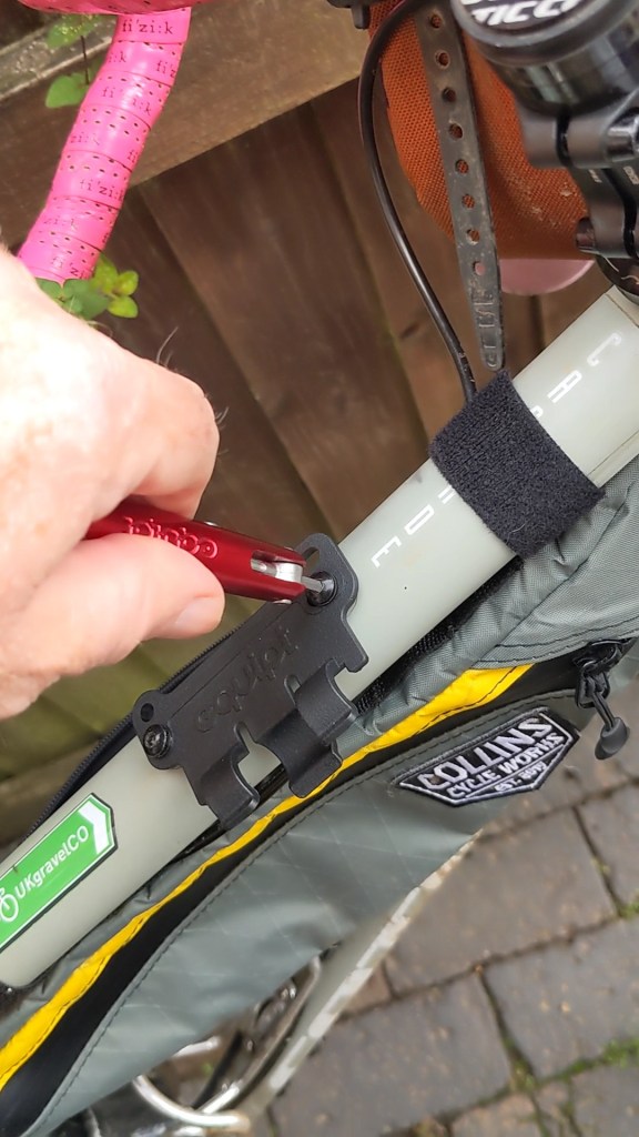 The Sardine on the other hand is a different kettle of fish (yes, i did that on purpose and I’m probably going to have to explain it to Koh) it is a mutltitool designed to be with you on every ride. This is where the shape (it’s not fish shaped at all) is a winner. the long thin profile makes it sit in any bar, frame, saddle or top tube bag very neatly. if you don’t want to hide it away though it comes with a plastic mount that will sit behind a bottle cage or any two bolt mounts on your frame. I put this one on the top tube as it made taking pictures easy, in real riding I wouldn’t mount it there as I might catch it with my knee given my knee-in riding style.