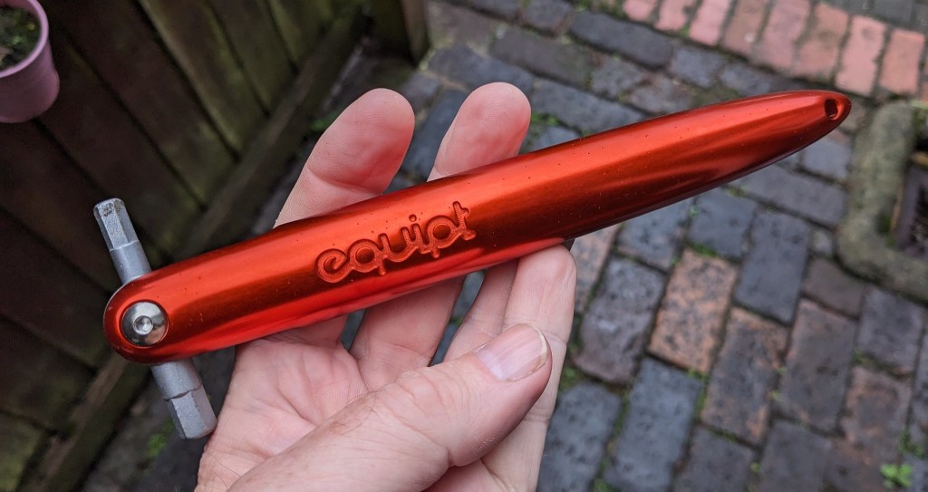 The Cucumber is one hefty lump of machined aluminium and because of this it’s a workshop or back of the car/van tool rather than a carry with you item. It has a 6mm and 8mm bit at one end , these pivot making it easy to use at different angles. Perfect for through axles or pedal fitting or removal