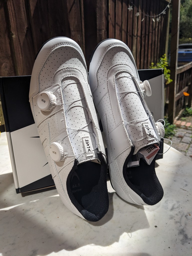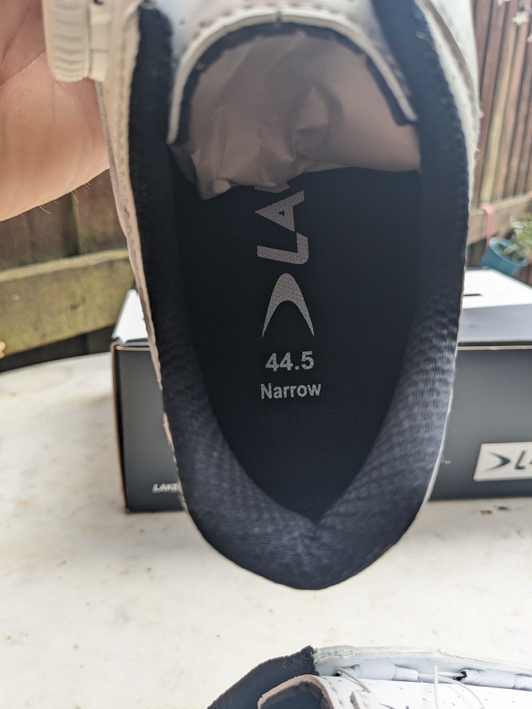 I’ll start first with sizing and this is because Lake are one of the few companies that manufacture cycling shoes that offer different widths, narrow, regular and wide. The fitting guide on the lake website is excellent, theres even a tutorial on how to measure your own feet. This involves a piece of paper, a tape measure, a pen and of course your feet! I measured mine and took advice from the guys at Lake. I usually take a EU44 and mostly find that size comfortable in most shoe brands. Lake suggested going a half size bigger with a narrow fit. I left the colour up to them, secretly hoping for the white pair as they’d stand out for the photos.