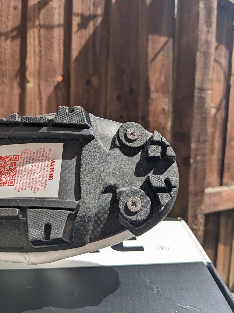 The sole is plain carbon but there’s a little rubber coverage between the heel and cleat section. The cleat fitment section of the sole is fairly long and I was able to pull the cleat far enough back for me to feel comfortable. I’m definately a ball of the foot over the pedal axle kind of rider rather than on the toes so this was good news, so many other shoe brands don’t have this adjustbility