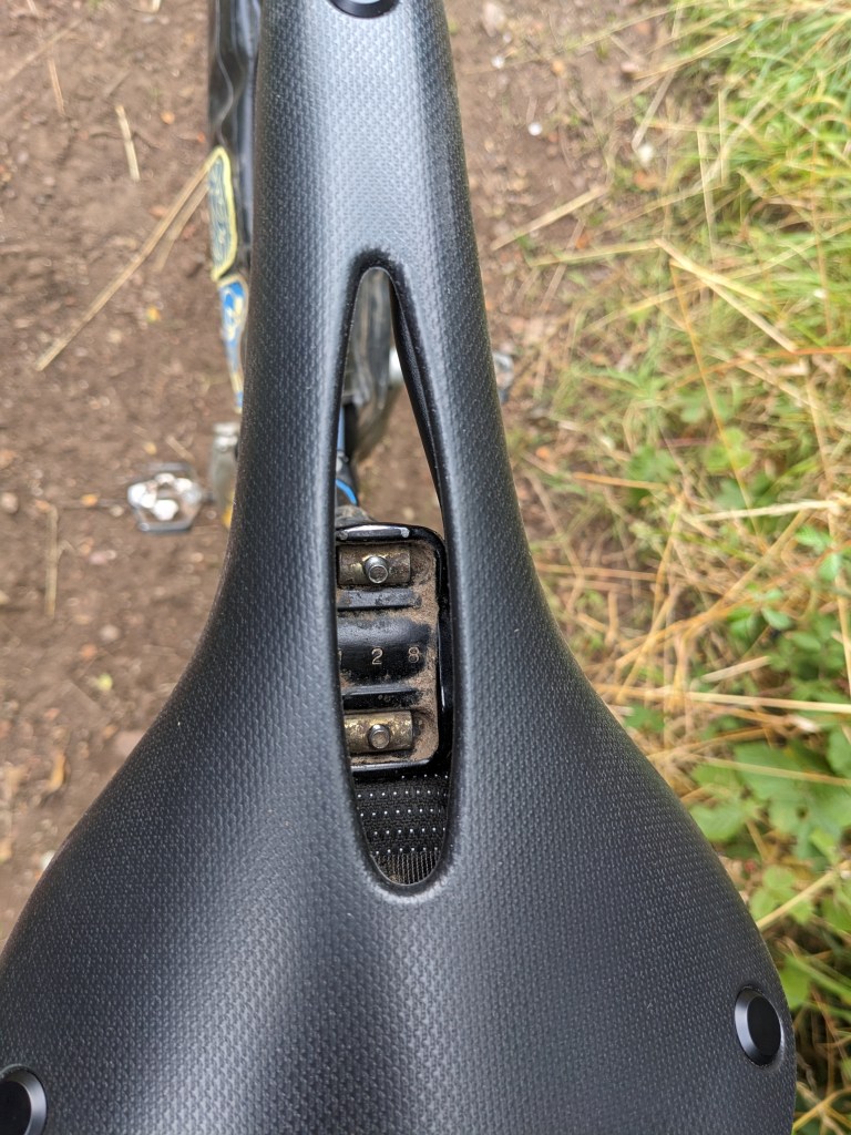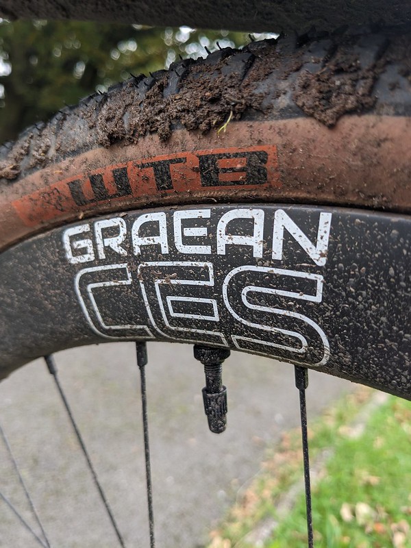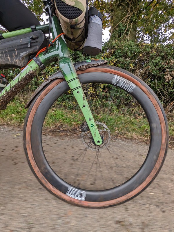 The clearance for tyres on this bike is a claimed 50mm and with the 43mm gravel kings that came fitted to the wheels there was acres of room both in the fork and the frame. There didn’t seem to be provision to fit a dropper post. The bottom bracket is a thread in T47 unit, no pressfit bearings in this frame I’m delighted to say. both axles are bolt through as you’d expect.