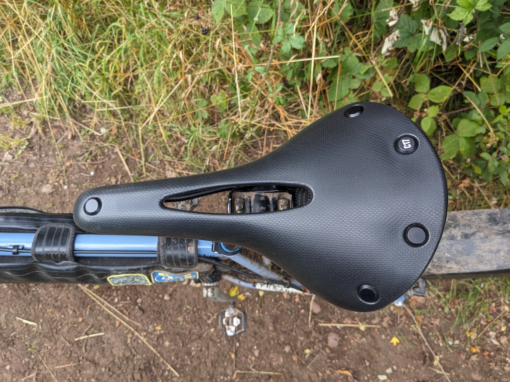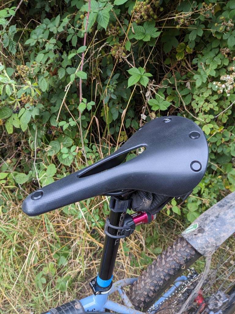 Well, sorry if that came across as a bit of a rant, it wasn’t meant to be but that bar did annoy me and that is because THE FRAME AND FORK IS VERY VERY GOOD! It’s responsive, push on the pedals and all the power goes to the rear wheel but the rear end doesn’t feel stiff, that carbon seatpost absorbs a lot of trail chatter. the head angle is just in the sweet spot of great handling without being ponderous on the tarmac and despite Fara saying the bike has a short wheelbase there was absolutely no toe overlap. this is a great frameset just let down but a simple bit of specification. Pop a shorter stem and a 440-446cm bar with some generous flare and a short reach, something like a Ritchey Corralitos bar and this bike would absolutely fly!