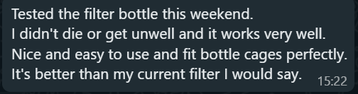 To quote Tim again “I’ve used a few (filter bottles) and this is the best one I’ve ever used” you can’t say fairer than that.