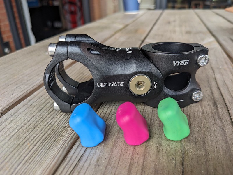 the tape has the usual sticky strip on the underside but its not too superglue like that you can’t unwind it from the bars to make adjustments if you need to when fitting. The tape comes with simple push in bar end plugs but i opted to use my own wedge plugs because they match the frame colour and I’m a tart! The tape does come in other colours, white, blue, red and green. Green would have been my prefered colour (see previous sentence).