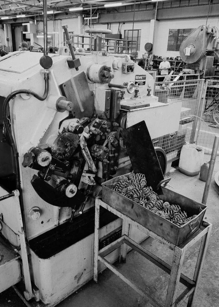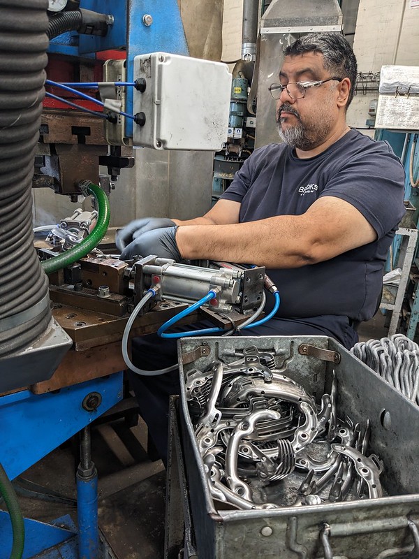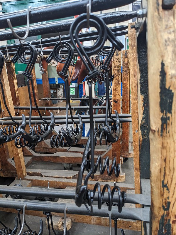 we saw springs and saddle frames being bent into shape using, quite frankly lethal looking machines which undoubtedly back in the day didn’t have all the safety guards they do now attached to them.