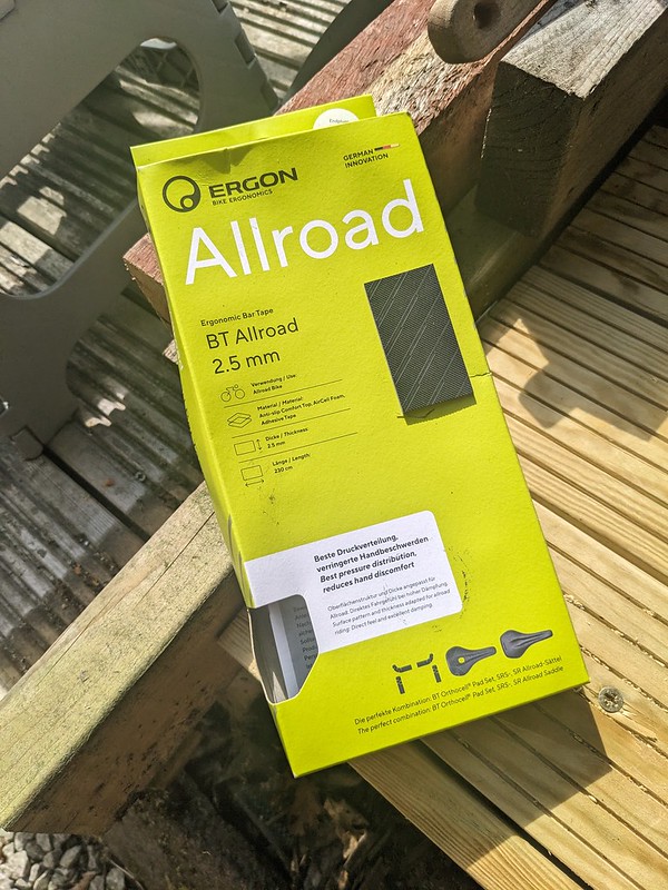 The Ergon Allroad bartape has survived very hot sun (yay!), dust, mud and quite a bit of sweat. It has coped well with being leaned on various cafe and pub walls, lots and lots of bramble brushing, hedgrow interfaces and being loaded into vehicles. Infact with a quick wash with soapy water it looks almost like it’s just been mounted to the bike.