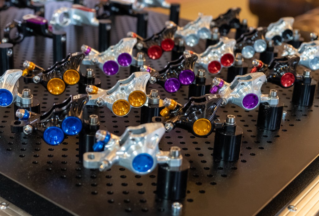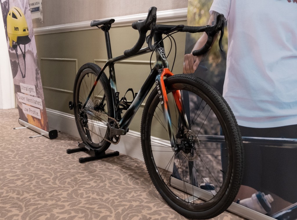 One of the most unique bikes at the show was this Chapter 3 special edition from Vielo. The paint work is done by hand with a lot of sanding back and each one of the limited run is unique. If you have to ask how much, then you probably can’t afford it. We also saw a beautiful new frameset from Vielo with an amazingly detailed paint finish but it’s embargoed until the Sea Otter show so I can’t post the pictures but suffice to say you’d probably want one!
