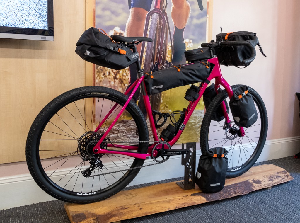 If you want to load up the bike with bike packing bags and use it for long self supported adventures you’ll need to get creative and maybe invest in a rack as apart from the three bottle cage mounts and the rack/mudguard mounts there is nothing else on the frame to bolt to. The quick handling might not be what you want on a fully loaded bike though.