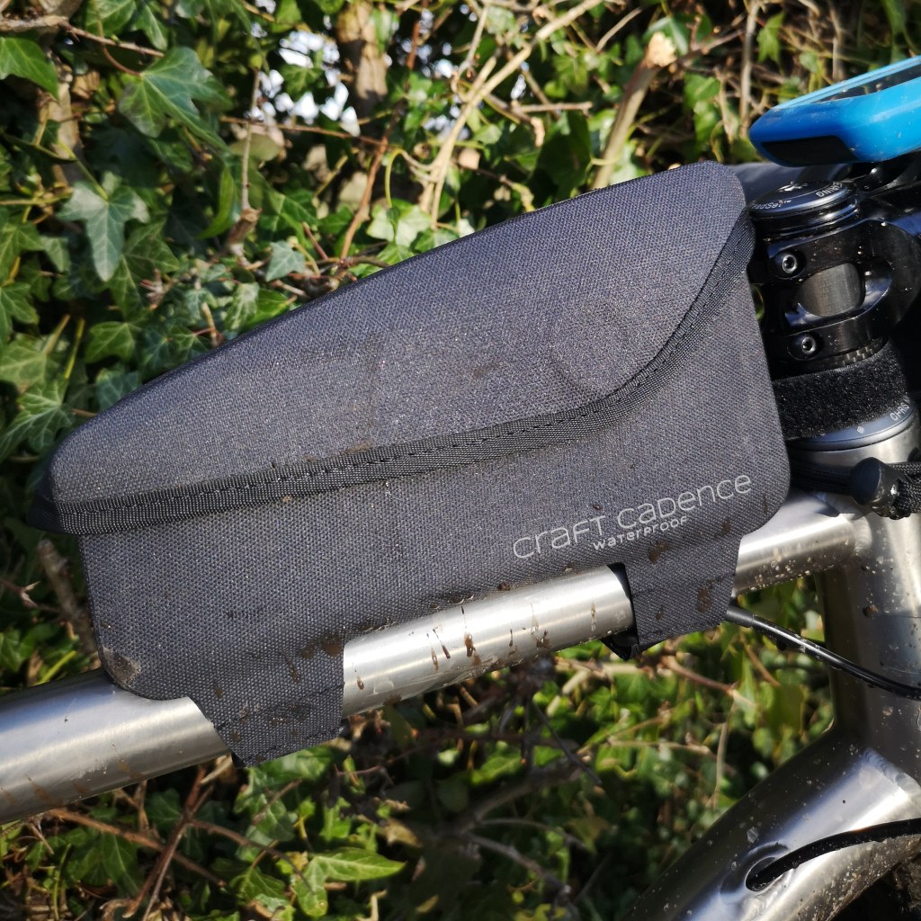 Although Wizard Works don’t claim that the bag is waterproof I found them very water resistant. The zip is very easy to open and close with one hand for mid ride snacks or to grab a camera etc. Because the bag is quite tall it’s best to pack it with the heavier items as low as possible to stop the bag flopping. Wizard Works do stock a Dr Jon widget to stabilise the bag via the steerer though or something like the 76 Projects anti strap clip will do just as good a job, see my review here The bag has a media port on the front which is great if your lights have a separate battery and a cable to you light unit. I could easily get my pixel 4a in a rubber case inside, a go-pro and mini tripod, some emergency cash, a spare face mask and a buff. You could easily use it as a refuel station for bars and snacks needed on the go. The only thing I’d like to see is an inside pocket maybe to store a credit card or to keep cash separate from the other items so it’s easier to find in a hurry.