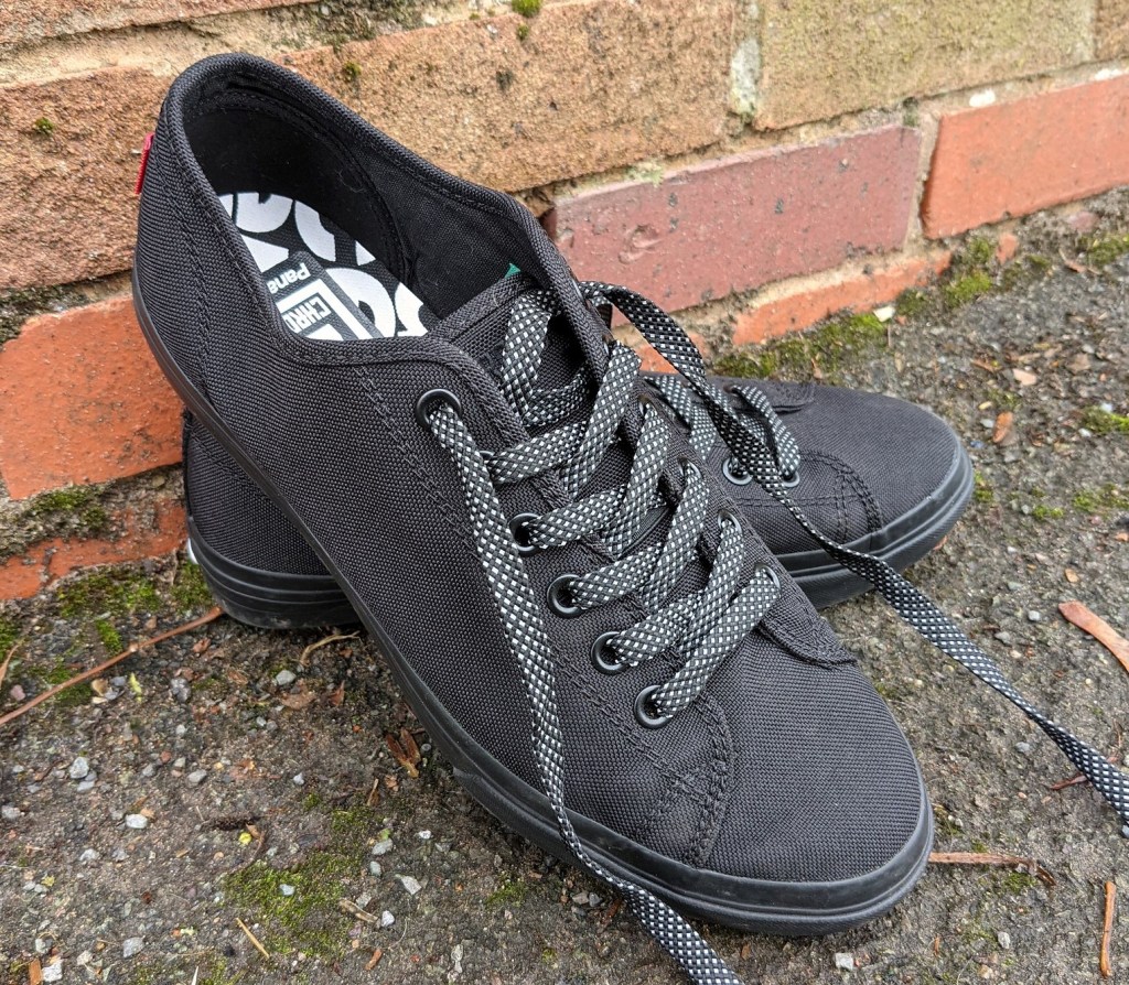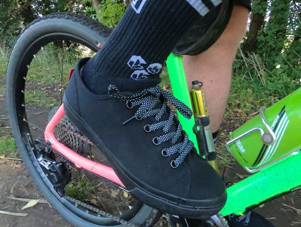 I’ve had the Chrome Kursk 2.0 for nearly a couple of months now and they pretty much look like they did when I got them out of the box. They look like a canvas shoe but the claims of robustness are spot on, they clean up well with a damp cloth too. As a cycling shoe they work remarkably well, you probably wouldn’t want to ride around the world in them or walk up Snowdon but for medium length rides, commuting, shopping, going to the pub or just messing about they are a great shoe.