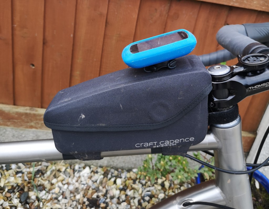Previous experience of using some top tube bags has highlighted that many of them have a bit of an Achilles heel and can suffer from what we at UKgravelCo call ‘FBS’ (Floppy Bag Syndrome). The top heavy nature of this style of bag means that many of them flop from side to side particularly over rougher terrain, meaning you catch your knees on them when pedalling, proving very annoying. When fully loaded the Craft Cadence bag only suffered from slight flop compared to other bags I’ve used, and on smoother terrain, hardly moved at all, so a plus point there, however this did change somewhat when I added my GPS unit to the loop on the top of the bag, increasing how top heavy it was and the flop greatly increased. My Garmin is on the larger size being an older 810 unit so this might not be such an issue, if you were using something a bit smaller and lighter, but I’d definitely be concerned if mounting a smartphone to the top of it.