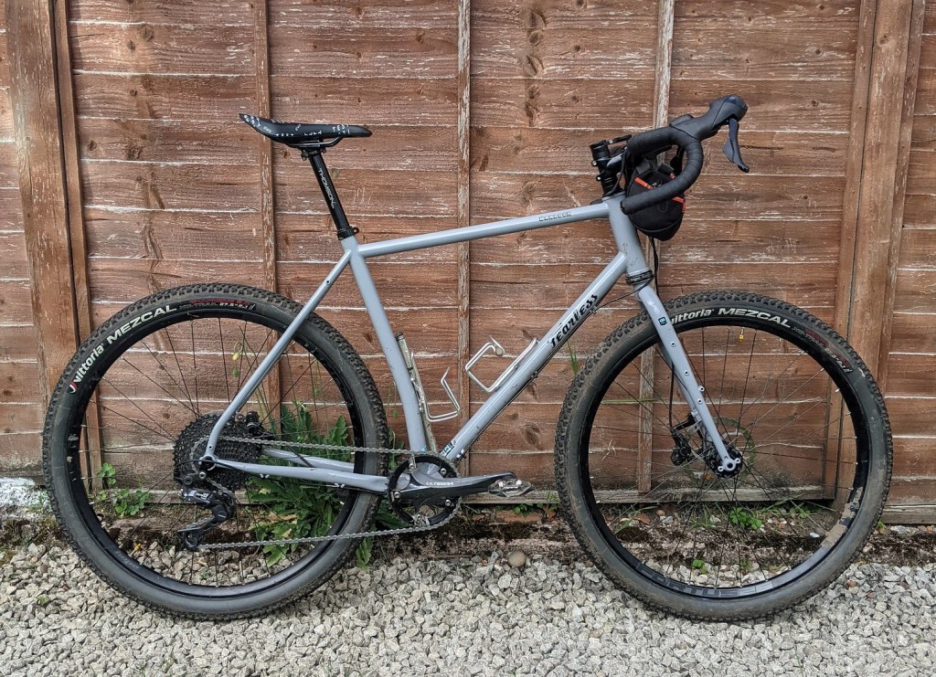 The frame has clearance for 700 x 47c, 650b x 58c (27.5 x 2.25″) wheels and tyres and during the test I fitted the following, 650x42mm, 650×2.1” and 700x42mm all fitted with loads of clearance. The Fearless website says a 650×2.25 will fit as well as 700x47mm (link below)