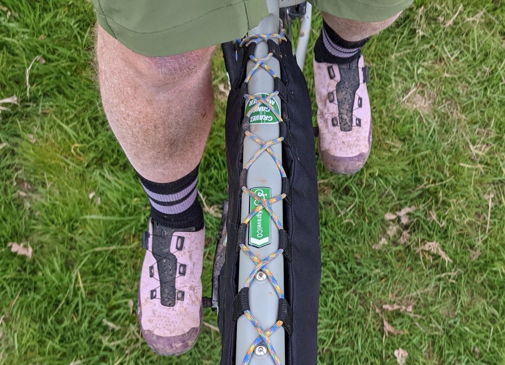 I recently bought a pair of Fizik Terra Ergo Lace shoes to ride the Devon Coast to Coast ride, see the video here and found them really comfortable for long distance riding. when i saw the Atlas shoe and that Fizik had described them as “Designed for gravel tracks, MTB trails, all-day adventures and extended bike packing escapes, for the rider who knows no borders” I really wanted to try them. Luckily after chatting to the guys at EXTRA UK the fizik UK importer at a trade show they very kindly sent me a pair to try out. They only had the pink and purple version in my size, but I’ll be honest I’d have been tempted by that colour anyway so I was happy, they do go with the pink bar tape on my bike too!