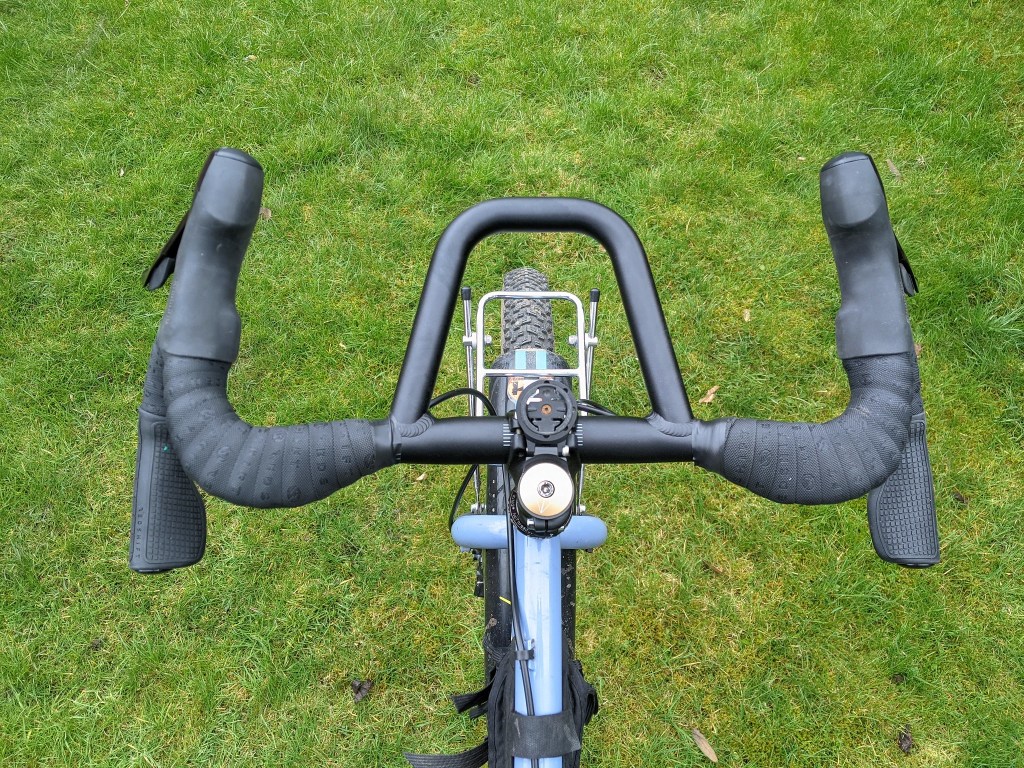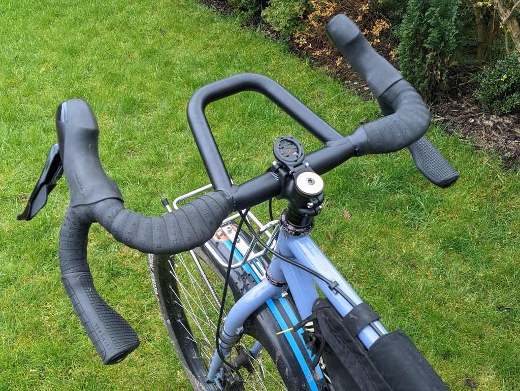The ride, Now I will come clean here and say from the outset that i do not like a thick bar, I know a lot of riders double wrap their bars for comfort but that has never worked for me. I just like a slightly squidgy bar tape to be comfy. With this in mind I was quite reluctant to add these grips to the kitchen Sink bar but the only way to test these properly is to ride them. I rode the bars for two weeks on long and short rides, over all the usual terrain near home and too and from work to get a good back round knowledge of how they feel and if they made any difference. After that i removed them and ran the bar as a standard bar to compare the two set ups. With the grips fitted i found cruising along on the tops more comfortable as I could lean my palm on the enlarged part and this definitely made a difference to fatigue after a long ride as my hands didn’t ache where they usually did. The Drops didn’t really work for me as rightly or wrongly I just don’t hold the drops where the grip sits, I tend to use the rounded part of the loop as I can hook my thumb and fingers around it while reaching for the brake lever when riding technical trails. I climb using my hand in a similar position for power and so again hardly touched that Drop grip.