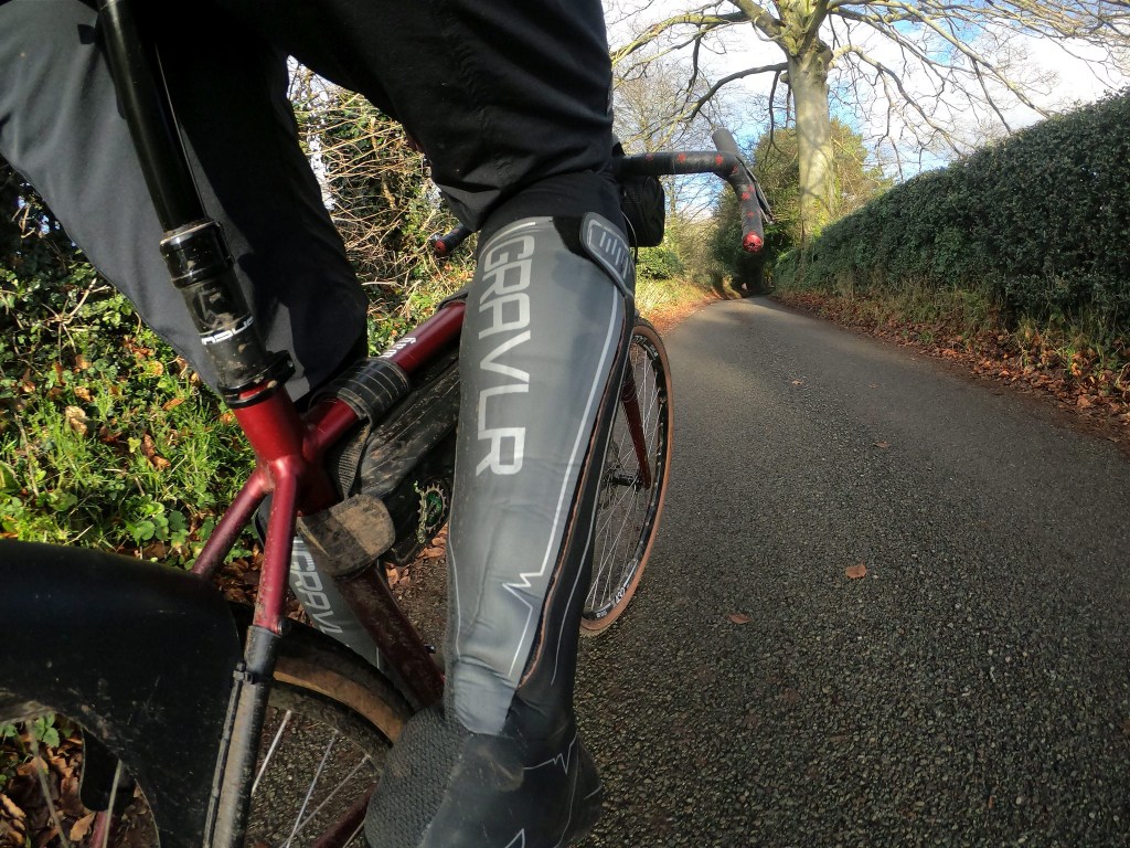 Did I get Cold feet? On rides between 5-10 degrees I could have ridden on for as long as my energy could last, my feet were extremely comfortable in feel and temperature. On the coldest ride which was around 1 degree where in my normal set up I’d have been suffering after around 10 miles The GRAVLRs kept my feet comfortable for longer, In fact I could still wiggle my toes and had feeling in them after around 30 miles, they were cold but this is a massive improvement to how my feet normally feel. This is a complete win for me! In all temperatures and some really gritty wet conditions my feet stayed dry. The construction of the overshoes keeps the wind chill and damp at bay and together with that panel on the shin this the secret of their success.