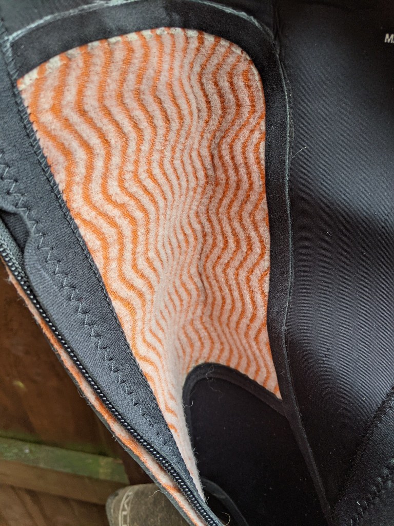 The GRAVLRs are made from “aero armour” which is a very stretchy smooth surfaced material which is reassuringly thick but not at all heavy. They have kevlar reinforcement to stop abrasions on the toe and ankle and this really works, there have been no tears or marks even though they’ve been through some tough conditions. They have a sort of quilted panel on the inside next to your shin to keep the warm blood flowing down to the toes. The side zip is robust and is glove friendly with a velcro flap to keep it neat. Underneath the foot area there is more kevlar reinforcement on the velcro flaps.