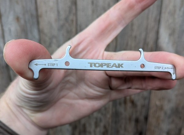 Finally a tool every cyclist should own. If you don’t own any other tools i recommend you buy one of these first. Its a chain wear indicator and it’s a tool that can save you money. A chain wears out, even a well lubricated one wears out and wears the other steel components it touches such as chainrings, cassette sprockets and pulley wheels on a rear derraileur at the same time. This is fine if you regularly change your chain. however if you don’t and wait until a chain is so worn out it starts to affect shifting or all the teeth on everything resemble sharks fins its too late. The wear on other components will be to such a level that simply adding a new chain won’t be enough. that brand new unworn chain will not interact with the other components that have litterally changed tooth shape to match the other chain. this causes skipping and chain slip. This is where it gets expensive, changing a cassette, chainring and associated items is going to cost an absolute fortune in parts (and labour if you need a mechanics help).