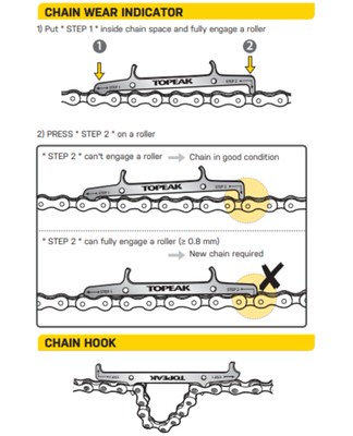 So this tool that costs less than £6 can save you hundreds of pounds by letting you know when to change a chain before it starts wearing out your drivetrain to the point of no return. it’s very straight forward to use but rather than write paragraphs in a “how to” style i’ve stolen Topeak’s instructions to show how easy it is, I’m sure (hoping) they don’t mind.
